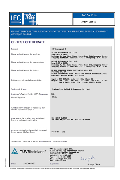 Product Certification Certificate